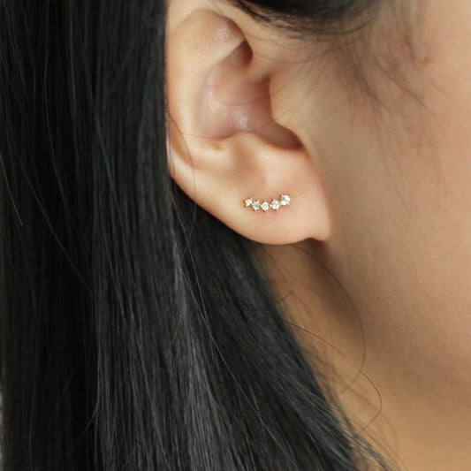 Aretes Bar Huggie en Oro Amarillo Sólido de 9k, con Zirconia Cúbica