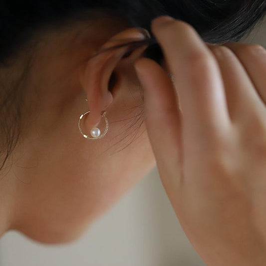 Arete tipo argolla en oro amarillo macizo de 9k y perla de agua dulce